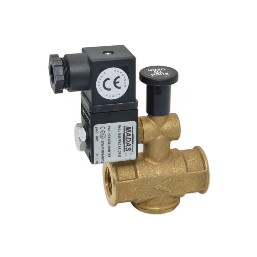 Клапани MADAS M16/RMO з ручним скиданням, прості і надзвичайно безпечні в експлуатації. Призначені для перекриття газу та сигналізації про небезпеку, що посилається сигналізаторами газу (метан, скраплений нафтовий газ, окис вуглецю тощо), запобіжними термостатами.