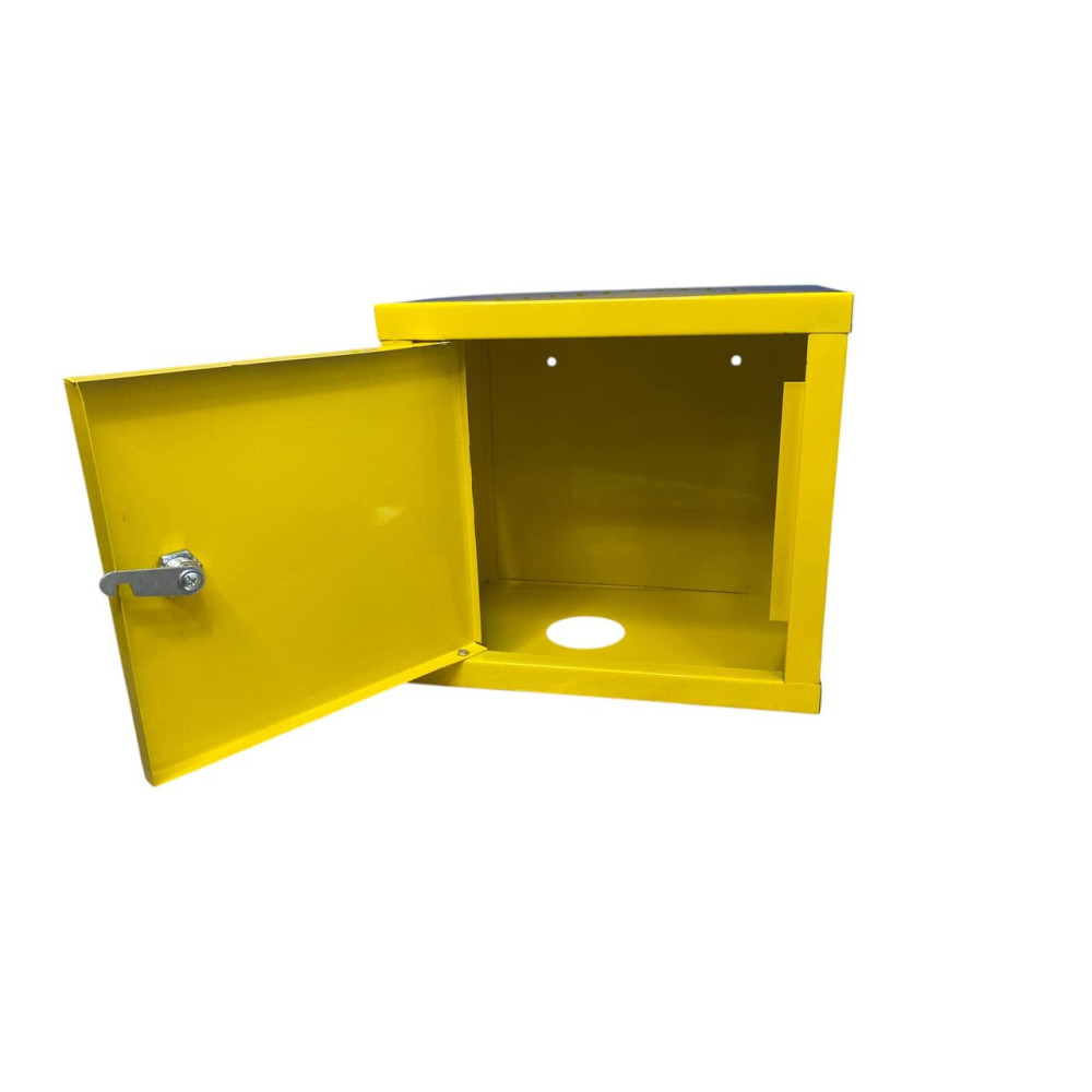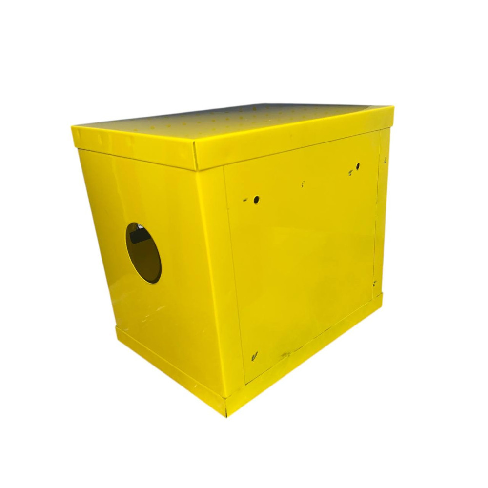 Виготовлений з металу, має цільну (нерозбірну) конструкцію. Оснащений замком для запобігання несанкціонованому відкриттю.